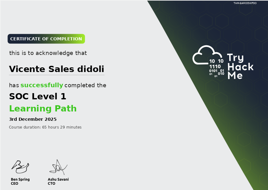 - 🎓 Certicate Soc level 1 – (Tryhackme)